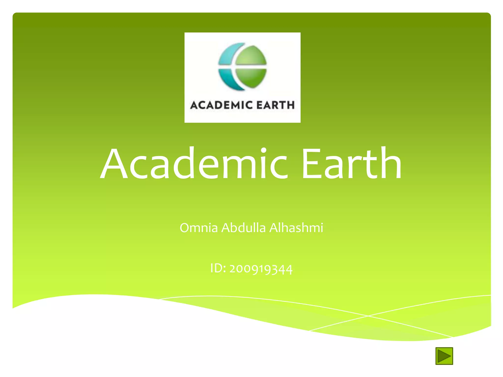 Academic Earth is an organization founded in 2008 by professors that provides free online video courses and lectures from top universities like NYU, Georgetown, Harvard, and MIT. Its mission is to give everyone access to a world-class education. An example of a highly rated lecture is Yale professor Donald Kagan's "Introduction to Ancient Greek History." Academic Earth saves time and does not require strong reading skills, but users need good English listening skills as content is only available in English and requires internet access.