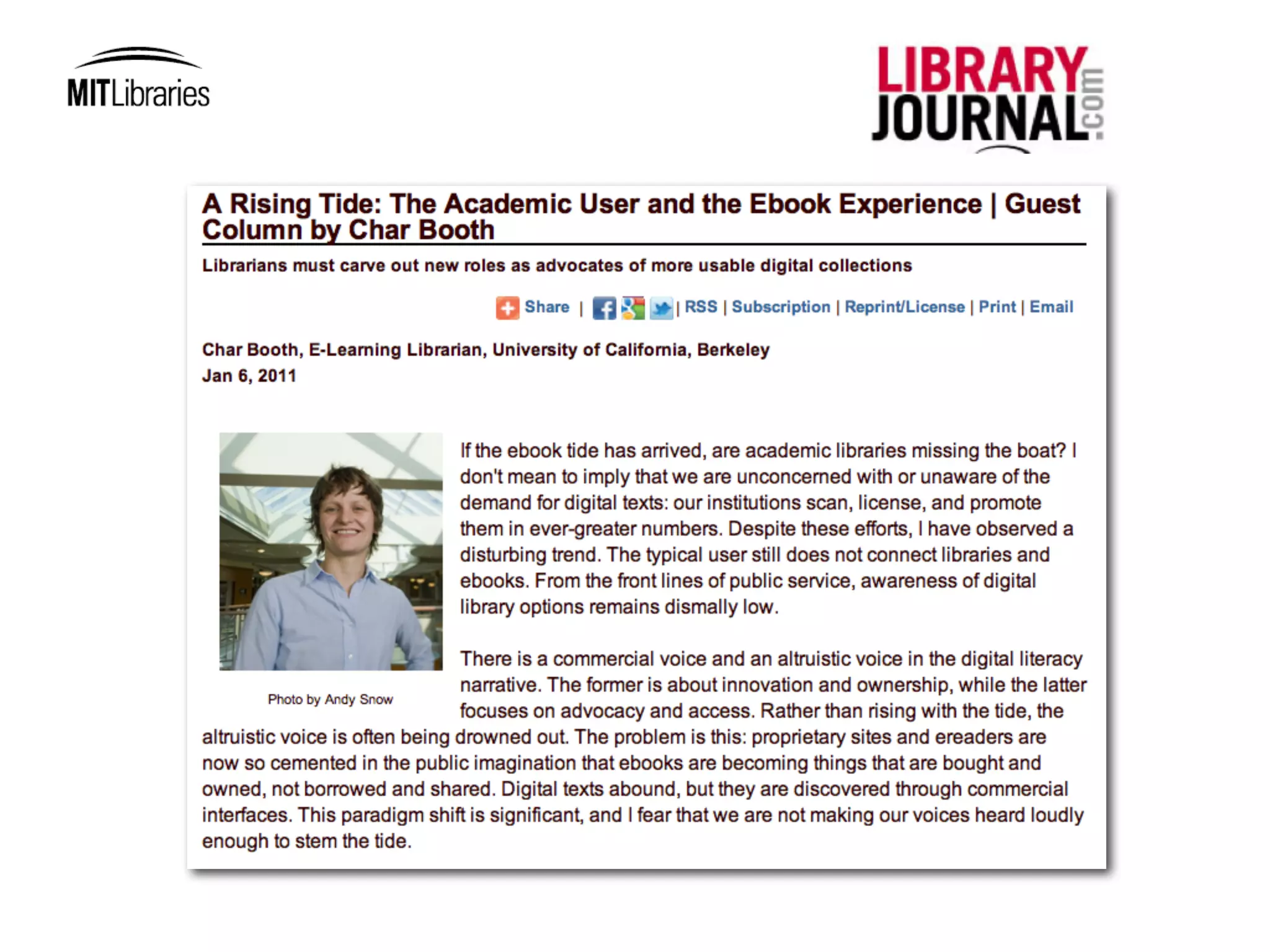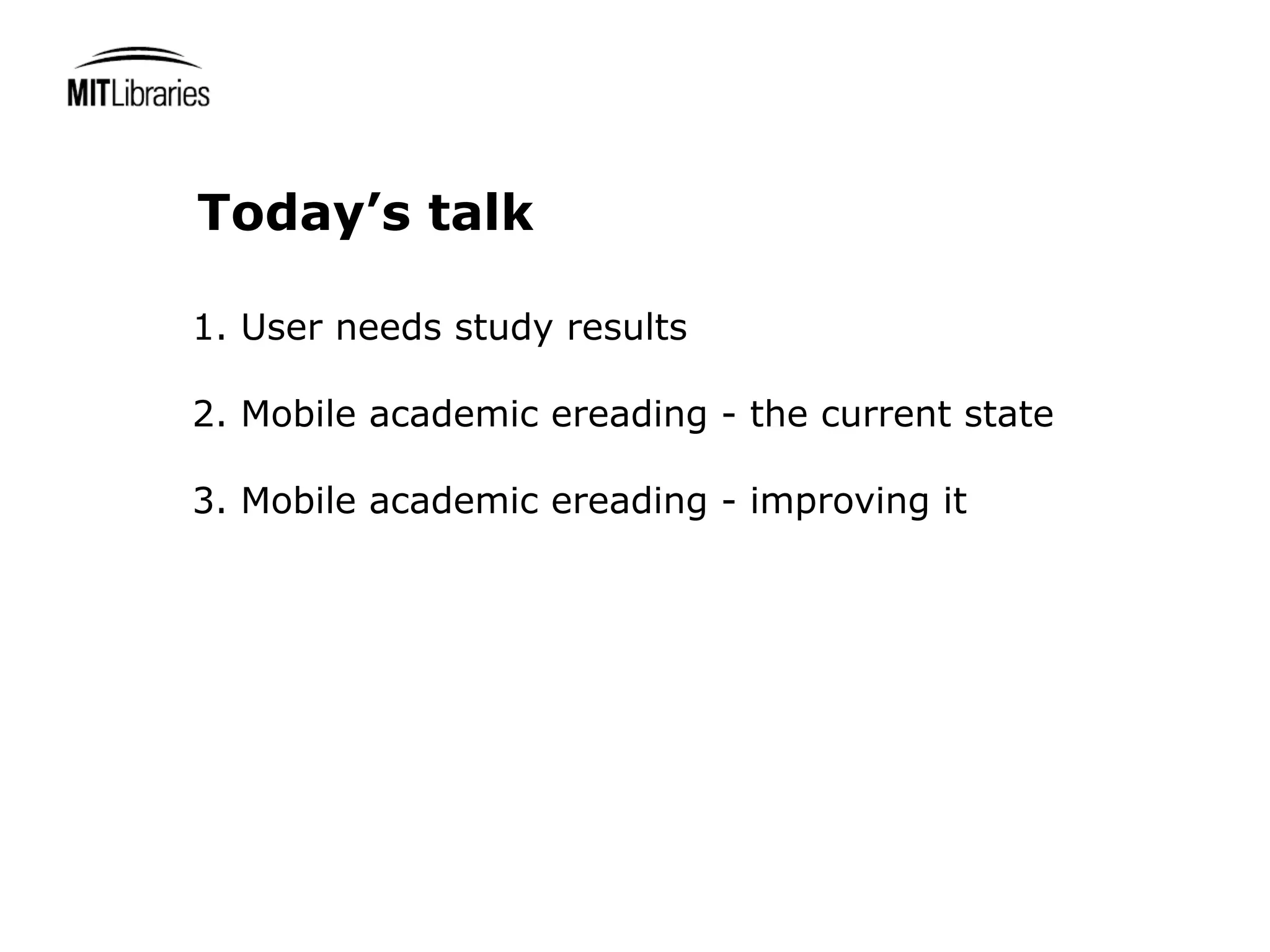 The document summarizes key themes from a user experience study on academic e-reading. It found that convenience is important to students, as they prefer familiar systems. However, fragmentation of content across multiple tools and devices hurts the experience. Collaboration and social features are important to support the social aspects of learning. Finally, e-books need to better take advantage of the digital medium, such as improved annotation tools, zooming of images, and integration with other tools and platforms to reduce fragmentation. The document discusses how e-books could address these themes to better meet student and researcher needs.