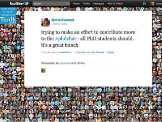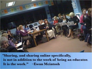 1) Dr. Alec Couros presented on academic collaboration and learning in a networked age, discussing how Web 2.0 tools can transform research, teaching, and service if academics build serious online presences.