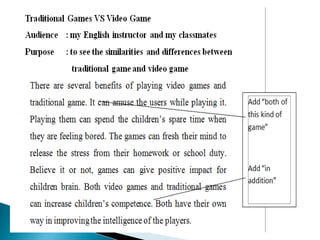 4) Revising the content and organization, then writing a final copy.
