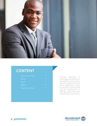 Accelerant is bridging the talent gap in the U.S. by promoting rural workforce engagement through advanced technology and remote work options, addressing the struggles corporations face in filling jobs. By leveraging rural communities, which offer cost-effective labor and a high quality of life, Accelerant aims to alleviate urban labor shortages while fostering social impact. Their comprehensive services include workforce development, hiring support, and access to rural opportunity hubs designed to attract and cultivate rural talent for businesses.