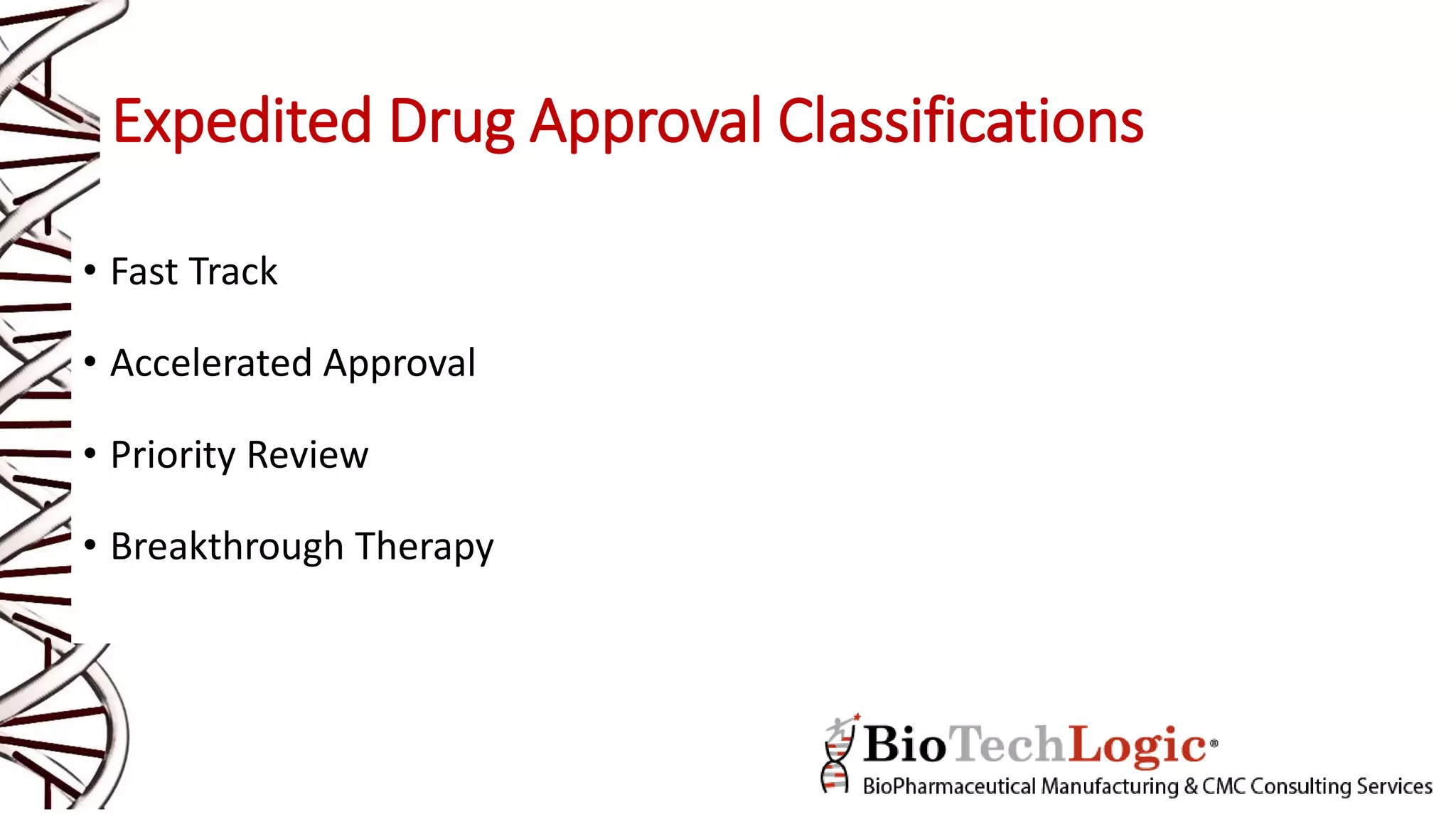 The document discusses expedited drug approval classifications including Fast Track, Accelerated Approval, Priority Review, and Breakthrough Therapy. It notes drugs approved under these classifications may have less data available at launch and incomplete manufacturing processes. It provides 9 approaches for managing expedited approvals, including open communication with the FDA, acknowledging limited data with plans to acquire missing data post-approval, and including a post-approval product lifecycle management plan to support deferred activities.