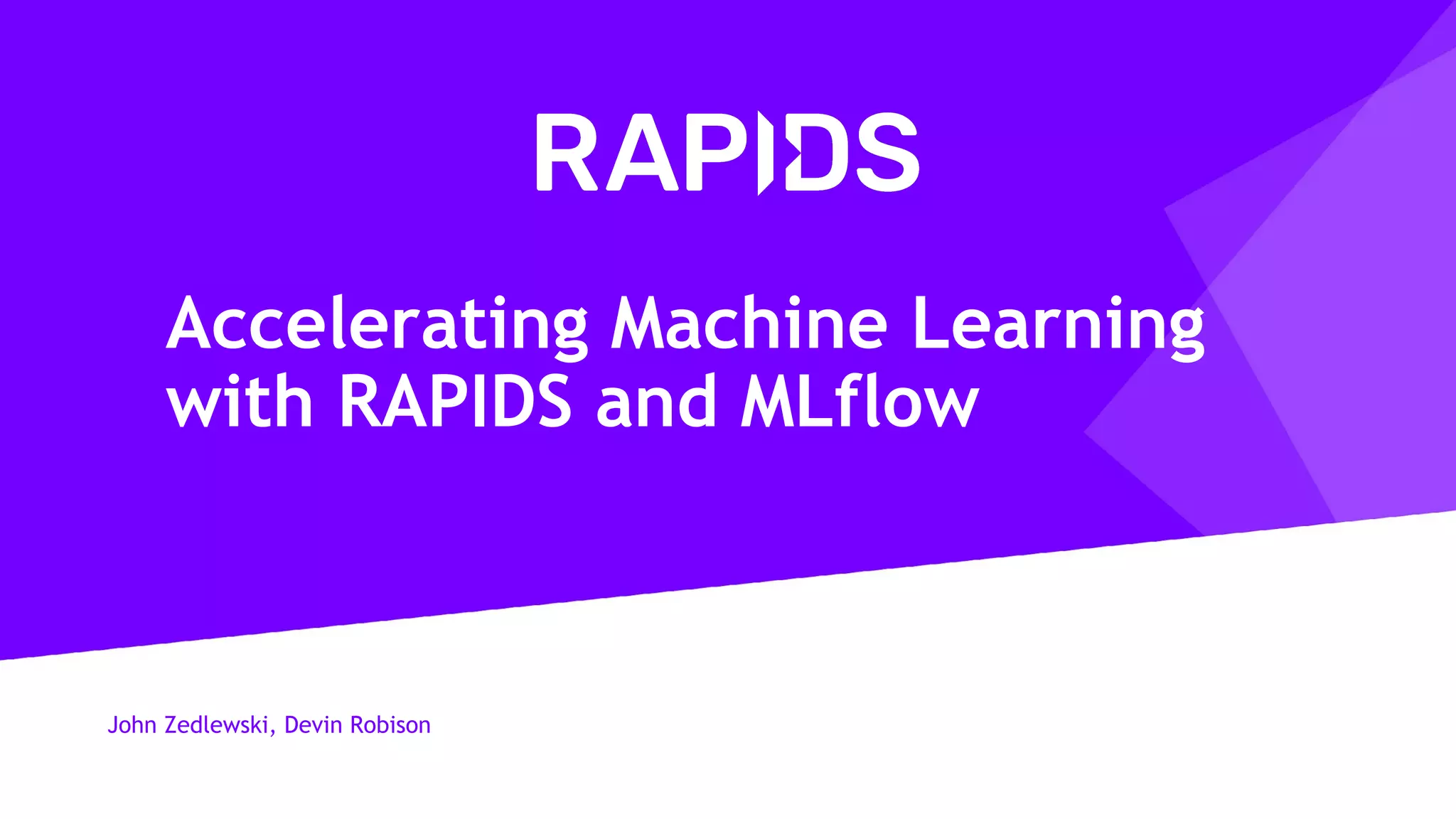 The document discusses the integration of RAPIDS and MLflow for accelerating machine learning workflows, focusing on data preparation, model training, and deployment using GPU-accelerated tools. It highlights the benefits of using RAPIDS for ETL processes, achieving significant performance improvements compared to CPU-based methods, while MLflow enhances collaboration, experiment tracking, and model management. Various examples and benchmarks illustrate the effective use of these technologies together, showcasing their capabilities in handling large datasets and improving training times.