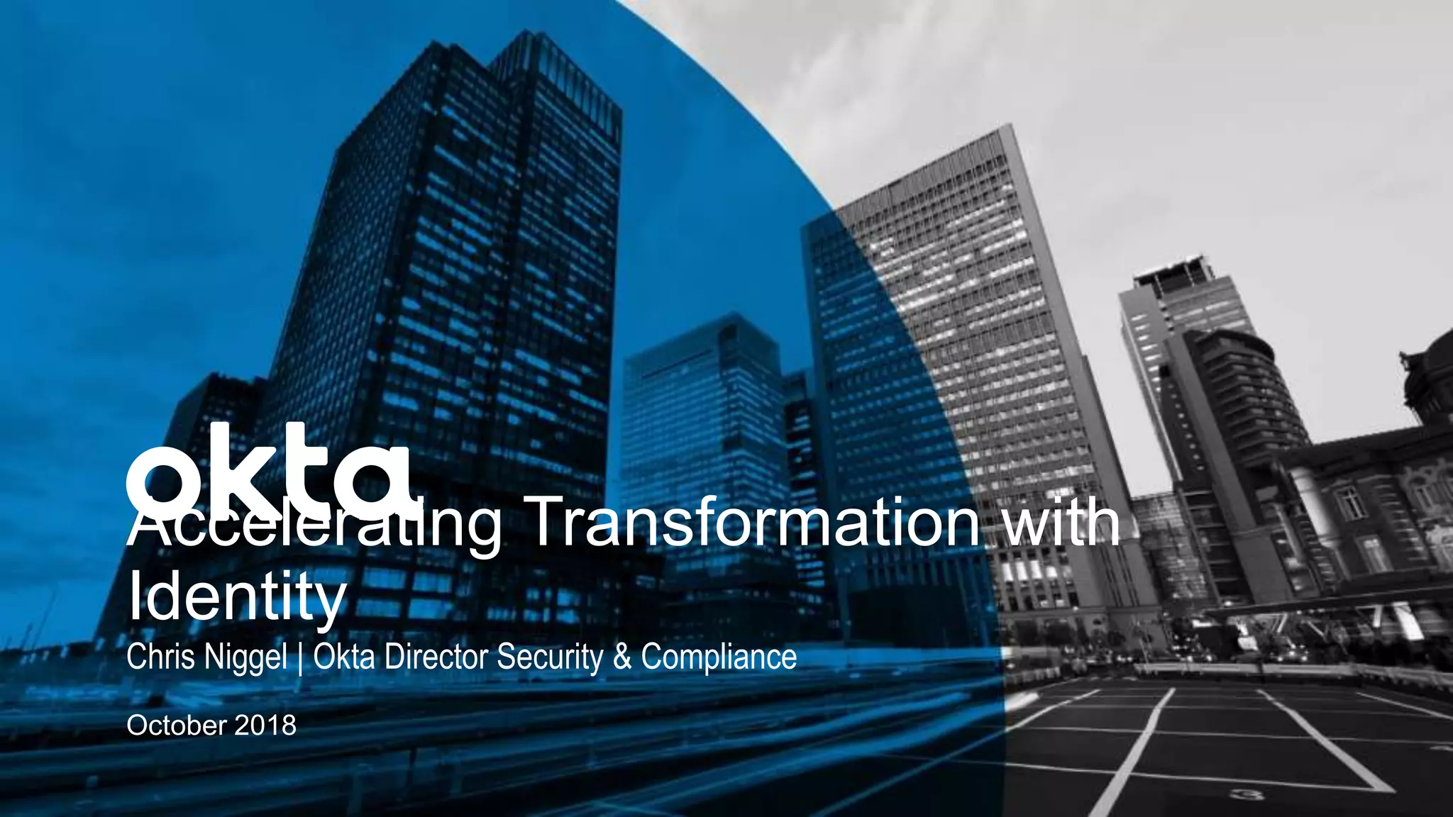 The document discusses how identity and access management solutions from Okta can help organizations accelerate their digital transformations by securely connecting internal and external users to any application or device. It explains Okta's identity solutions which use policy engines and multi-factor authentication methods to securely verify user identities based on the context of device, user, location, network and application in order to mitigate risks and ensure compliance.