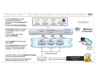 1) The document discusses IBM's hybrid cloud portfolio and how it can help organizations accelerate innovation through hybrid cloud.