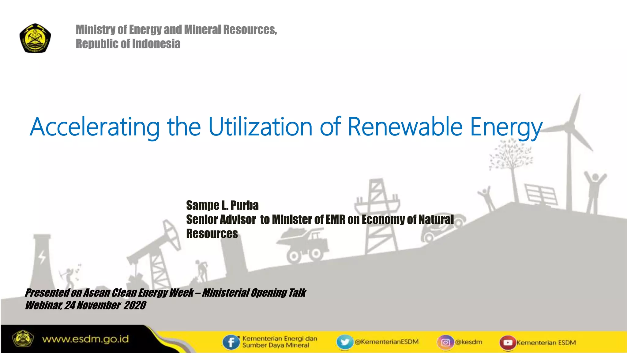 The document discusses Indonesia's commitment to accelerating renewable energy utilization, outlining policy updates, targets, and strategies to meet a 23% share of renewable energy in the national energy mix by 2025. It highlights challenges posed by the COVID-19 pandemic on electricity demand and investment while emphasizing new regulations and incentives to encourage renewable energy investment. The document also details specific energy generation targets and programs, such as the Green Booster initiative, to achieve these goals.