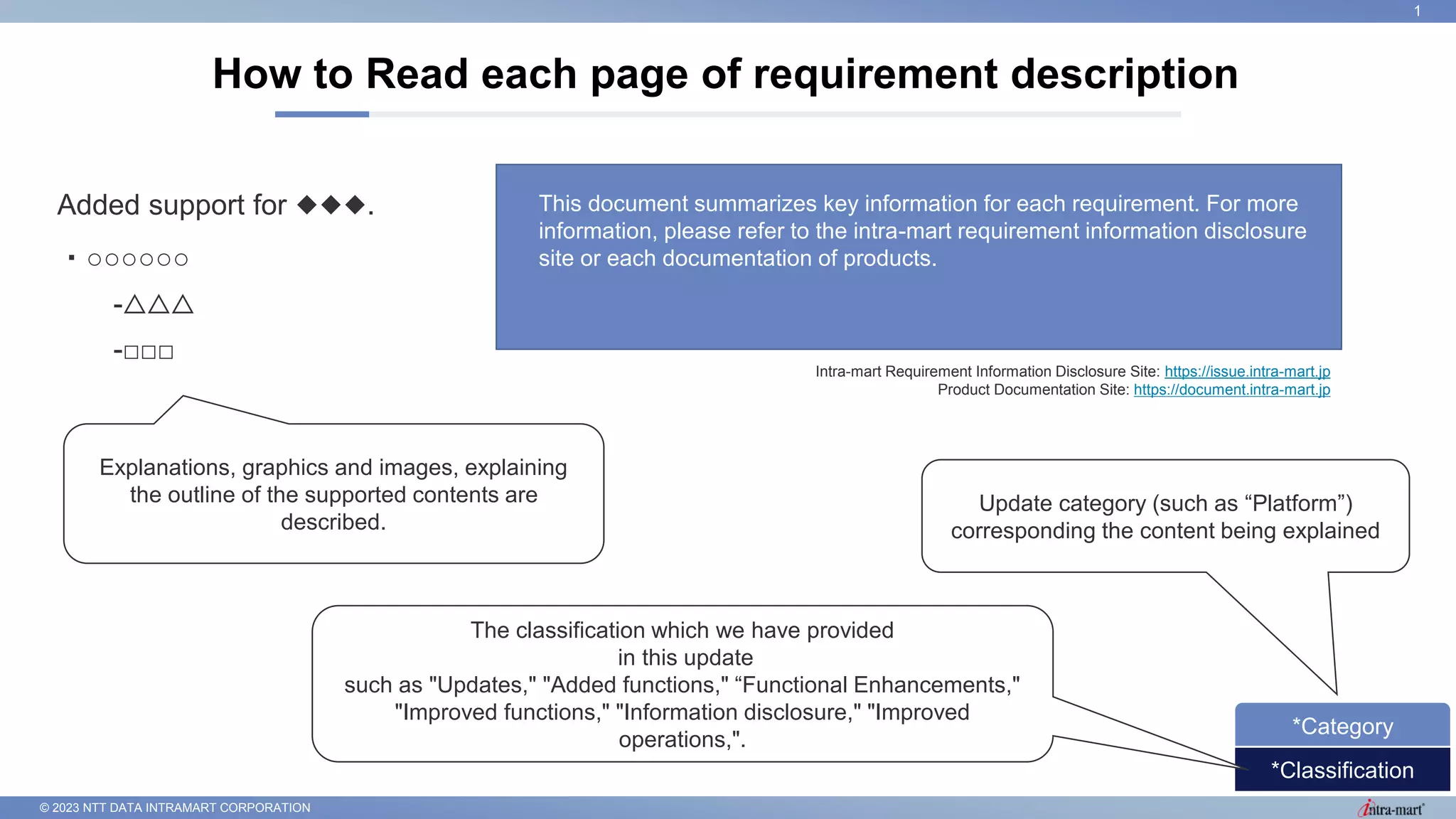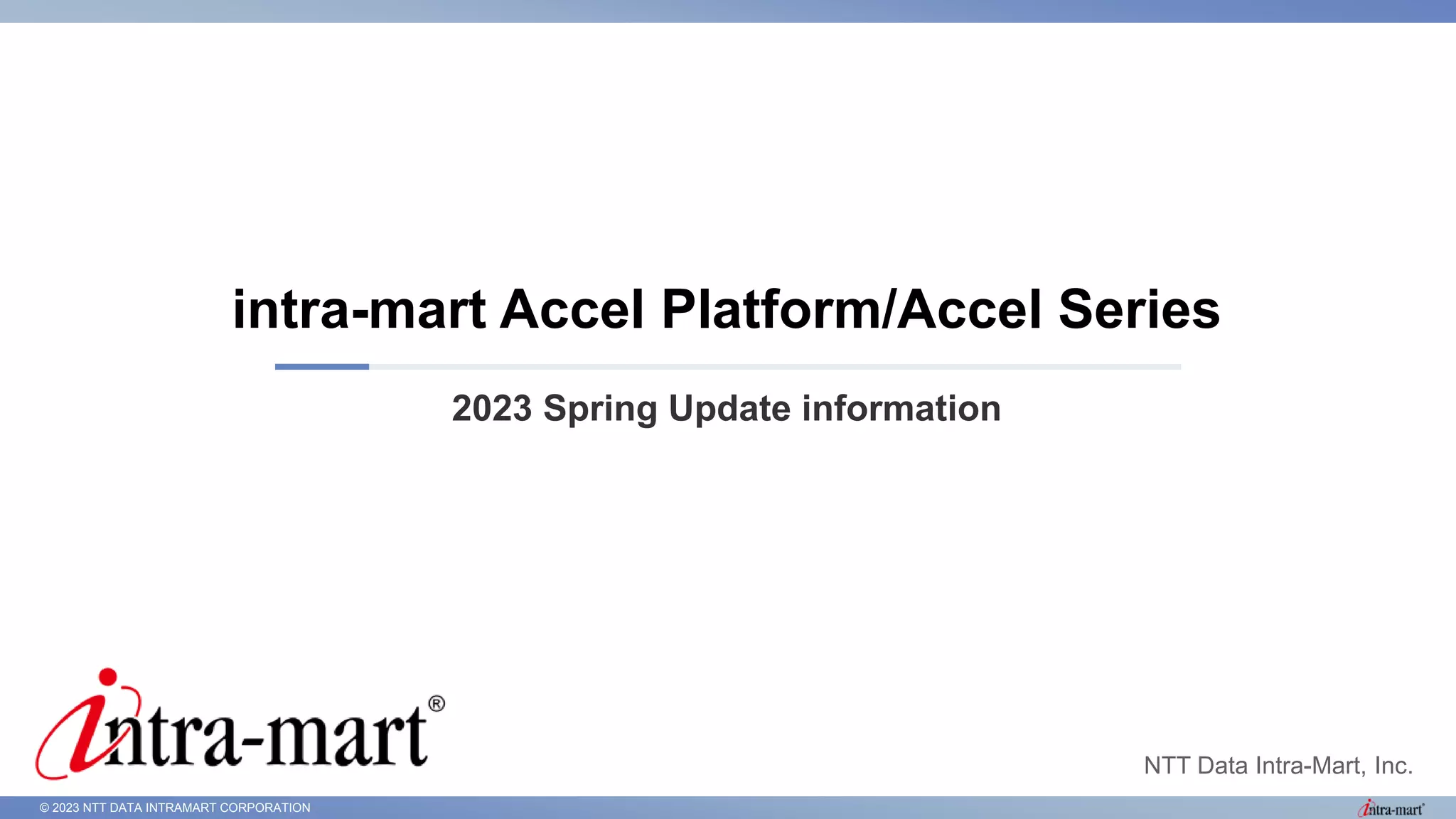 This document provides a summary of updates for the 2023 Spring release of various NTT Data Intra-Mart products and platforms, including: