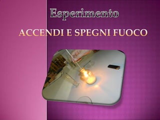 Il documento descrive un esperimento di chimica per studenti del liceo artistico, incentrato sulla reazione tra bicarbonato di sodio e aceto per produrre anidride carbonica, e l'uso di acqua ossigenata e lievito per generare ossigeno. Vengono forniti dettagli sulle precauzioni di sicurezza e la procedura passo dopo passo per eseguire l'esperimento. L'obiettivo è dimostrare il comportamento dei gas e le reazioni chimiche coinvolte.
