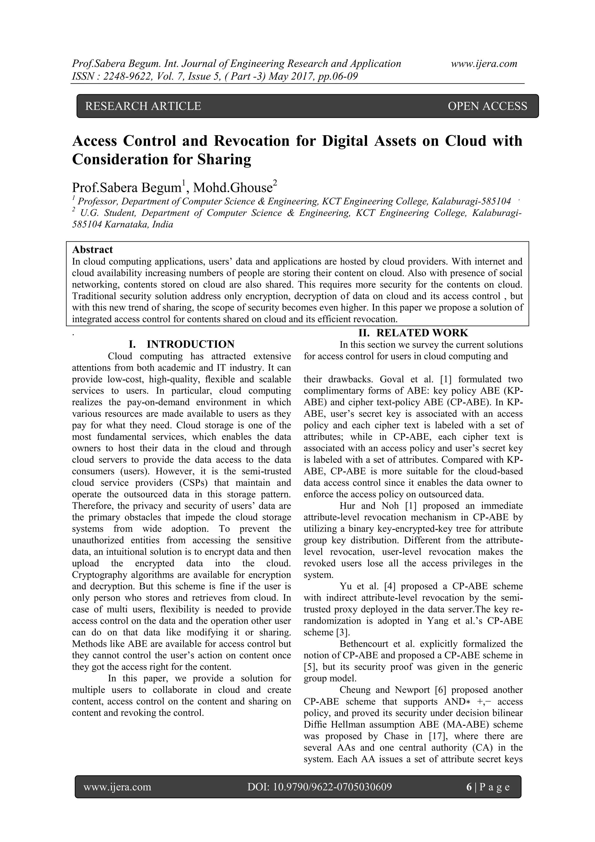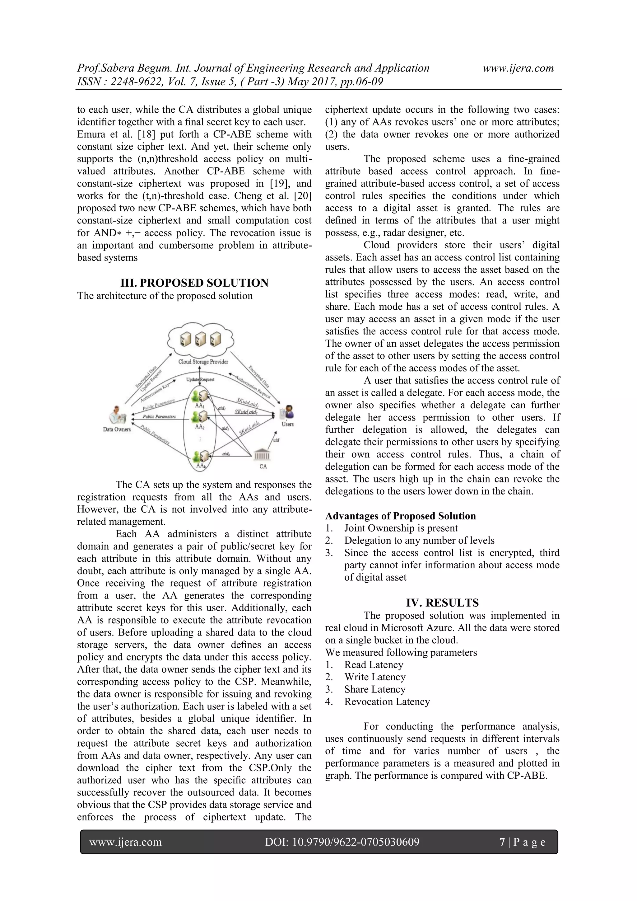 The paper discusses a proposed solution for access control and revocation of digital assets on cloud computing platforms, addressing the challenges posed by content sharing among multiple users. It highlights the inadequacies of traditional security methods and presents a fine-grained attribute-based access control mechanism that facilitates user collaboration, modification, and delegation of rights. Performance evaluations indicate that the proposed solution outperforms existing methods, such as ciphertext-policy attribute-based encryption (CP-ABE), in various latency metrics.