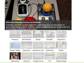 The document discusses a live online event about accessibility and assistive technologies. Guests included Sachin Malhan from Inclusive Planet, Sharron Rush from Knowbility, and Neil MacGregor from goQ. They discussed topics like accessibility, universal design, adaptive technologies, building inclusive online communities, and the potential for an online platform called Inclusive Planet that connects people with disabilities. Participants were encouraged to ask questions and learn more about making information and technologies accessible to all.