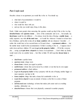 - Different types of accommodation such as halls of residence, student digs, apartments, terraced houses, and mobile homes.