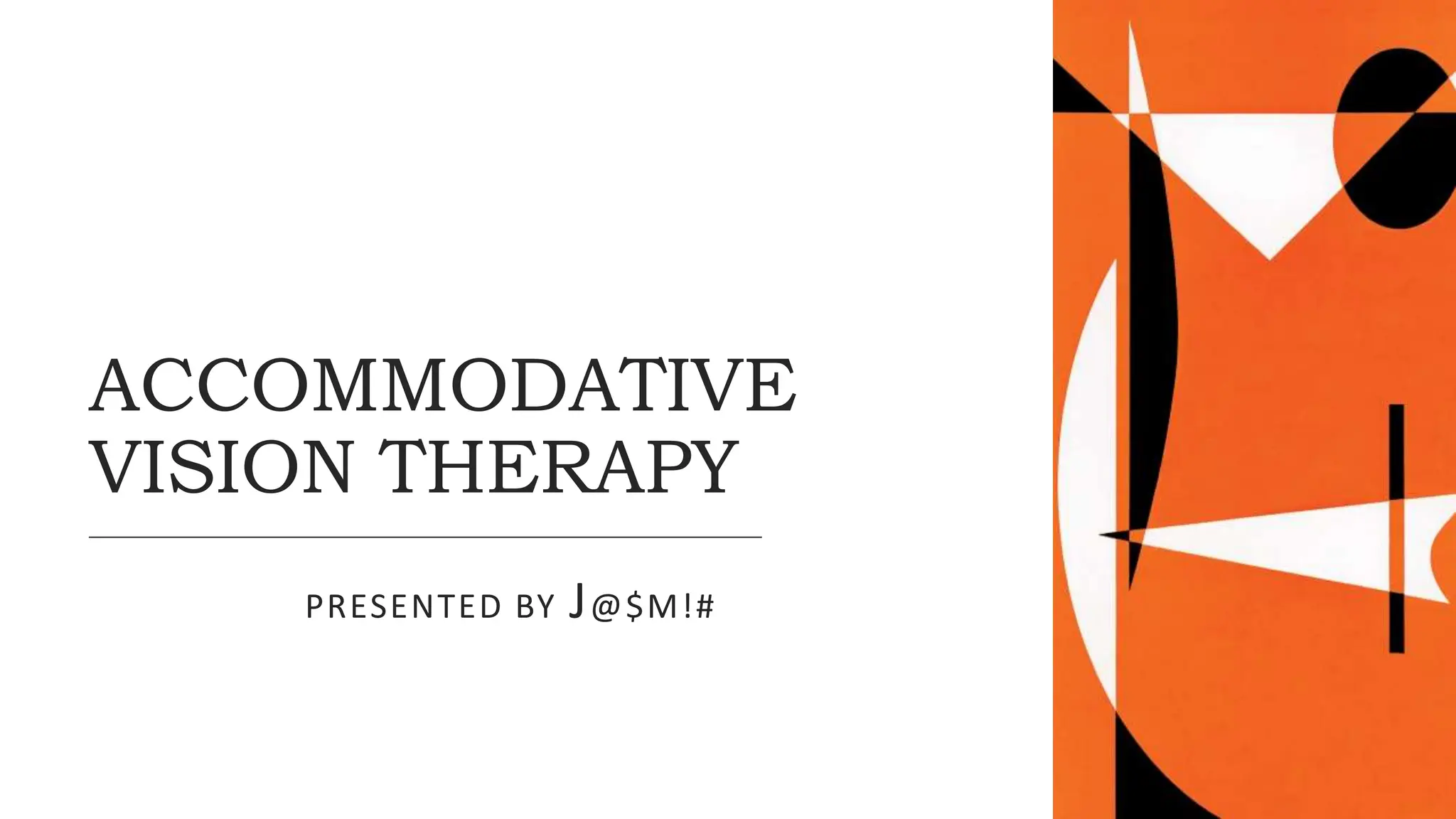 The document outlines accommodative vision therapy, which aims to improve accommodative amplitude and facility through various techniques and equipment, including plus and minus lenses. It describes specific procedures like the Red-Red Rock anaglyphic method and computer programs that utilize liquid crystal glasses, focusing on patient engagement and gradual increases in difficulty. Key endpoints for therapy are provided according to the patient's age and accommodative ability, emphasizing the development of awareness and control over accommodation.