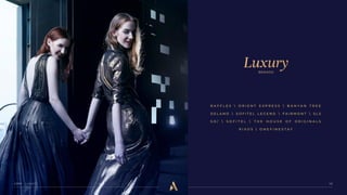 - The document outlines Accor's brands and collections including Raffles, Sofitel, Fairmont, and others, highlighting the attributes of each brand.