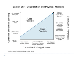 An Accountable Care Organization (ACO) is a provider-led organization that manages the full continuum of care for a defined patient population to improve quality and reduce costs. The US healthcare system lacks coordination and incentives for value over volume, motivating ACO development. ACOs differ from 1990s integrated delivery systems by focusing on managing performance risk rather than insurance risk through tools like bundled payments, quality tracking, and health IT. Critical functions include attributing patients, budgeting, performance measurement, and managing payment models to distribute shared savings incentives.