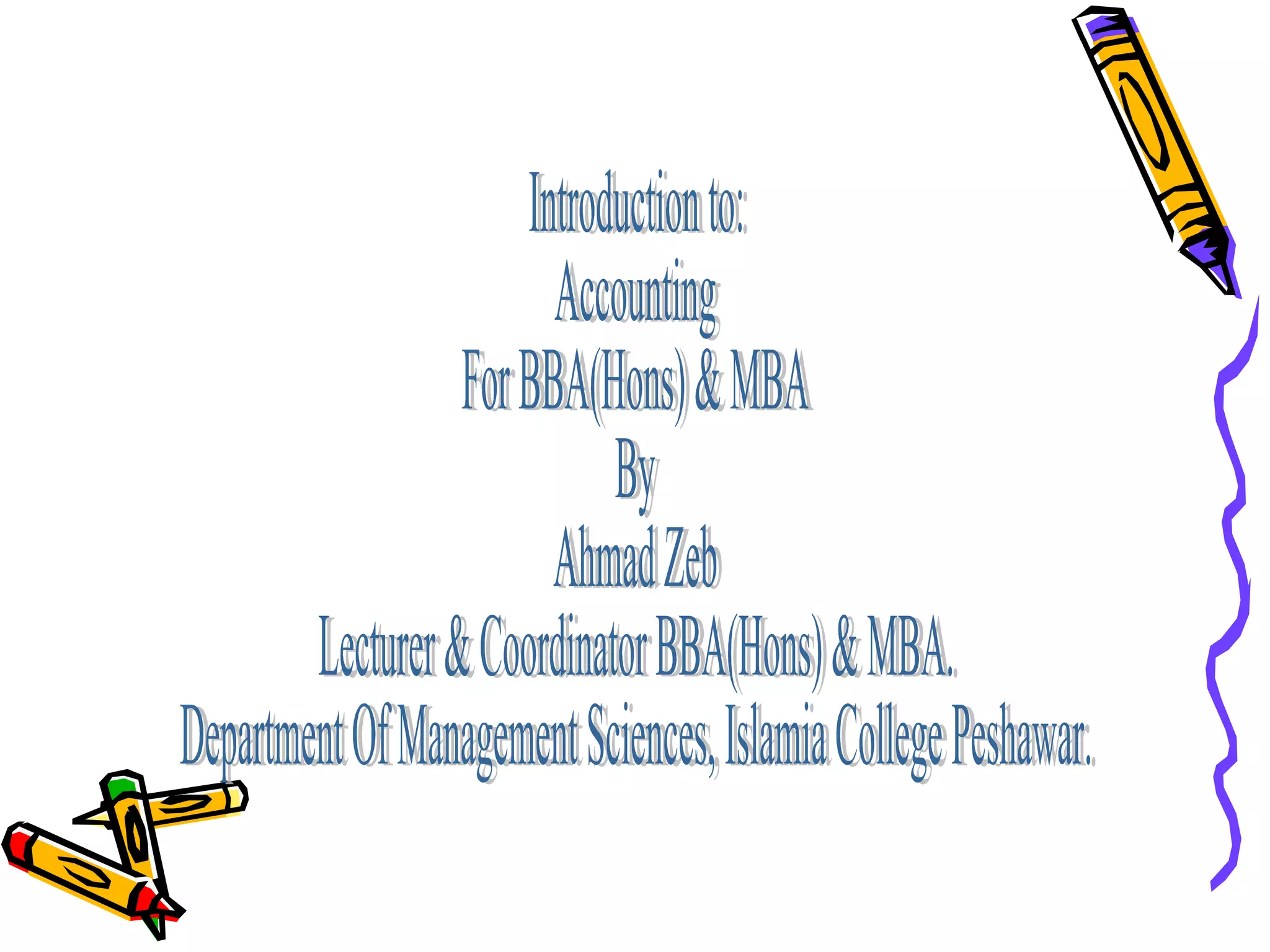 Accounting involves recording, classifying, and summarizing financial transactions and interpreting the results. There are several types of accounting including financial, cost, management, and tax accounting. Financial accounting provides information on the resources, obligations, and activities of an economic entity. Cost accounting determines the cost of products and helps management control costs. Management accounting provides information to assist management in decision making and controlling activities. Tax accounting prepares tax returns based on financial accounting information but adjusted for tax reporting requirements.