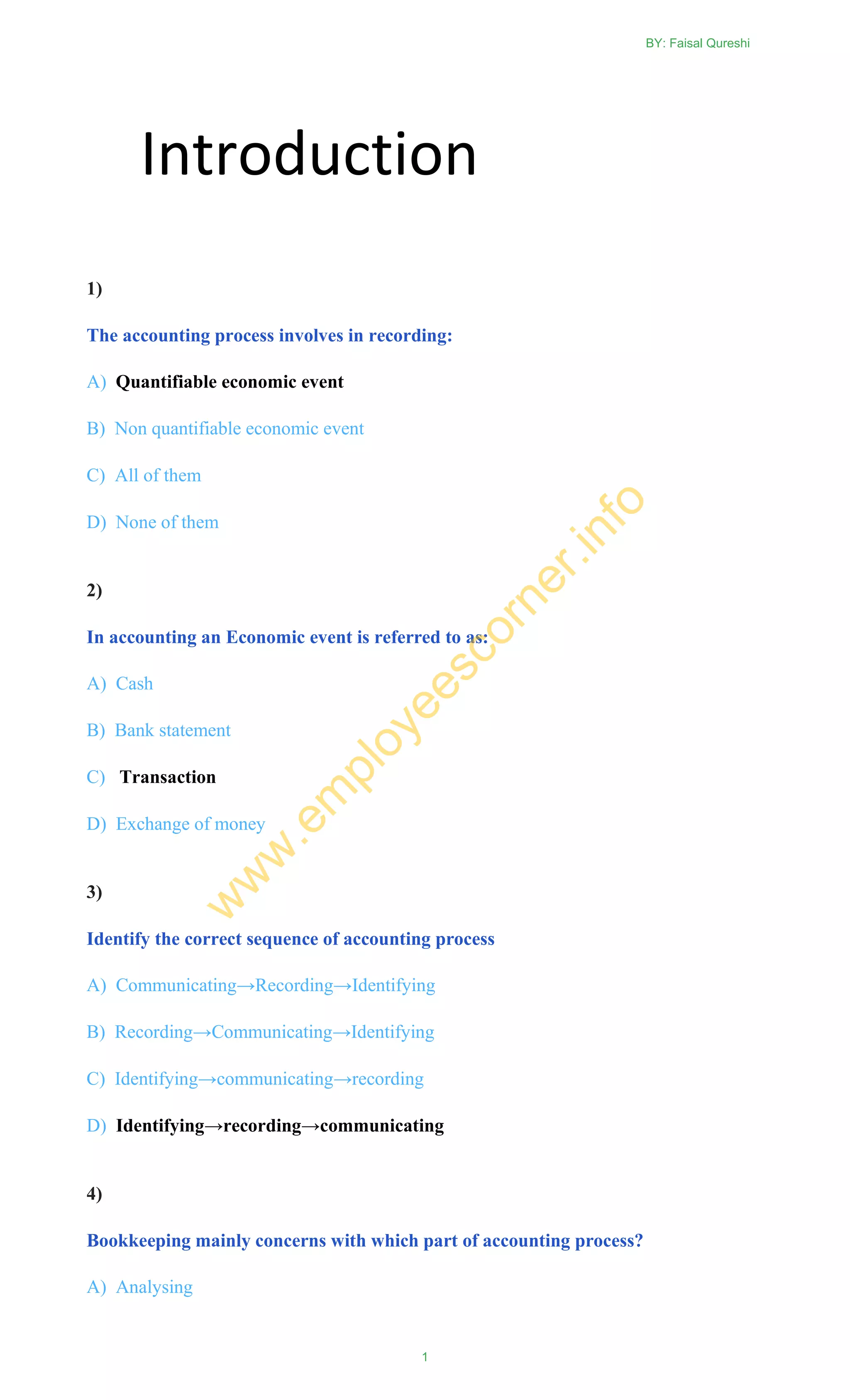 The document provides a quiz on accounting concepts and processes. It includes 30 multiple choice questions covering topics like the accounting equation, journals, ledger accounts, the accounting cycle, and financial statements. The questions are designed to test understanding of key accounting terms and how transactions are recorded within the accounting system.