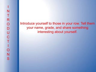 This document provides an introduction and overview of an accounting course. It includes the instructor's contact information, course objectives like learning the accounting equation and financial statements, classroom expectations of no electronics or food, and a grading breakdown. Supplies needed and an attached seating chart are also mentioned.