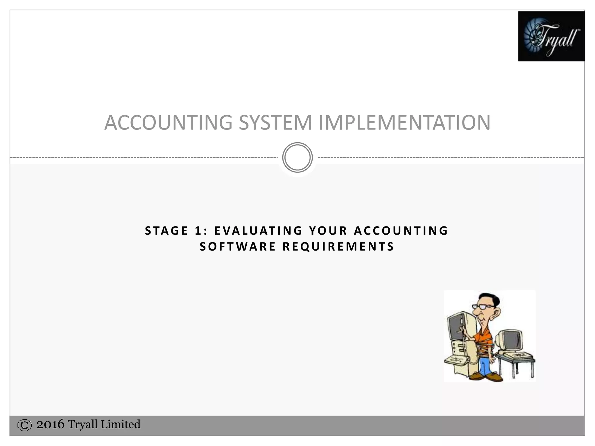 The document outlines a structured approach for evaluating and implementing new accounting software for businesses, emphasizing the importance of initial assessment, budget fixation, and industry-specific needs. Key roles such as a champion and project manager are highlighted to oversee the implementation process. It also recommends using consultants for cost savings and customization, along with various methods for selecting appropriate software solutions based on organizational requirements.