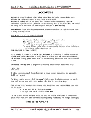 - Double entry bookkeeping requires every debit to have a corresponding credit. Transactions are recorded in accounts like cash, capital, purchases and sales.