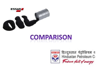 - An analysis of key financial ratios between the two companies in 2011 showed that HPCL had stronger financial performance and position compared to Essar Oil Limited, with higher profitability, liquidity, and returns.