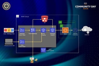 The document provides an overview of AWS CI/CD services and their components, including CodeCommit, CodeBuild, CodeDeploy, and CodePipeline, highlighting their roles in the software release process. It covers use cases, infrastructure rollouts, debugging, and rollback strategies, as well as pricing information. Key features of the services include secure source control, automated deployments, and integration with third-party tools for enhanced efficiency in development operations.