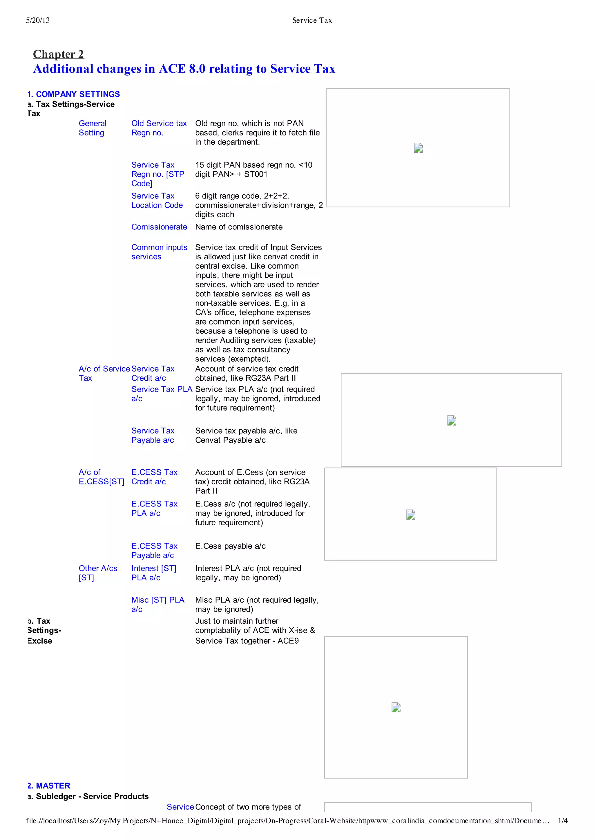 This document discusses changes made in ACE 8.0 related to service tax. Key changes include:
