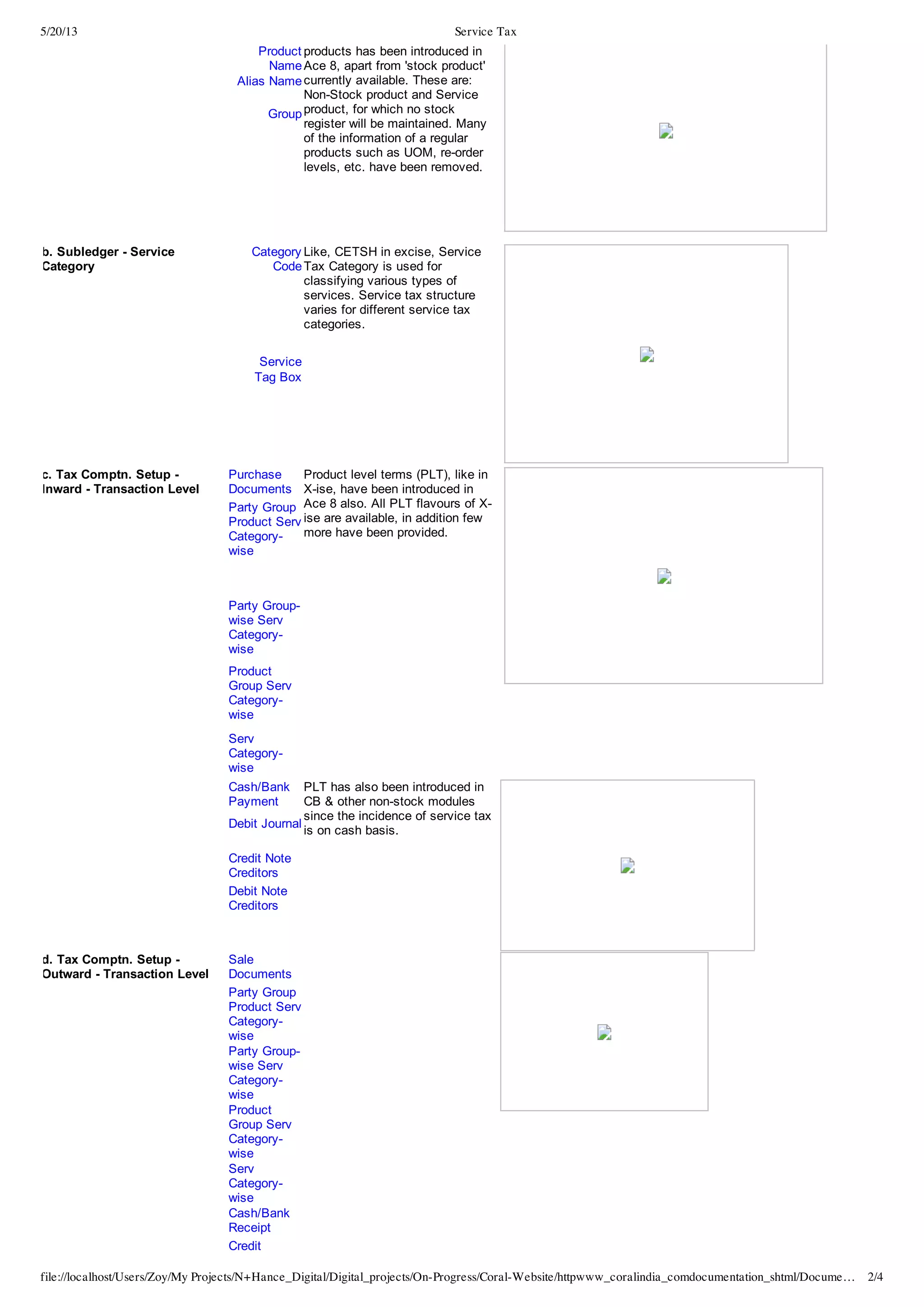 3. Introduction of product-level terms for purchase and sale documents to capture service tax implications correctly.