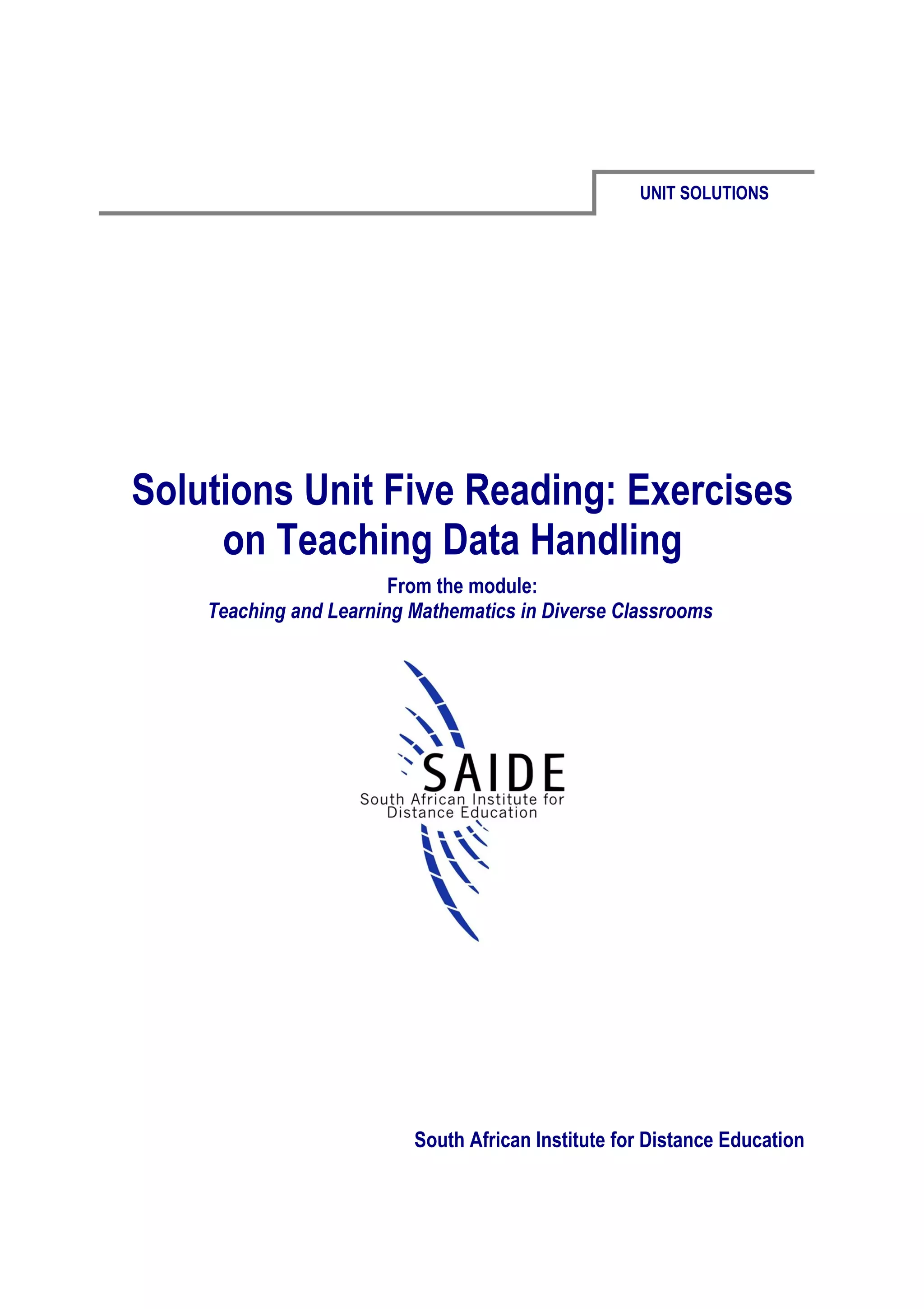 This document is a solutions guide for teaching data handling in mathematics, providing structured exercises and solutions aimed at educators in diverse classrooms. It covers various activities related to collecting, representing, and interpreting data, alongside suggestions for alternative teaching materials available online. The guide emphasizes the importance of effective data representation to enhance understanding among learners.