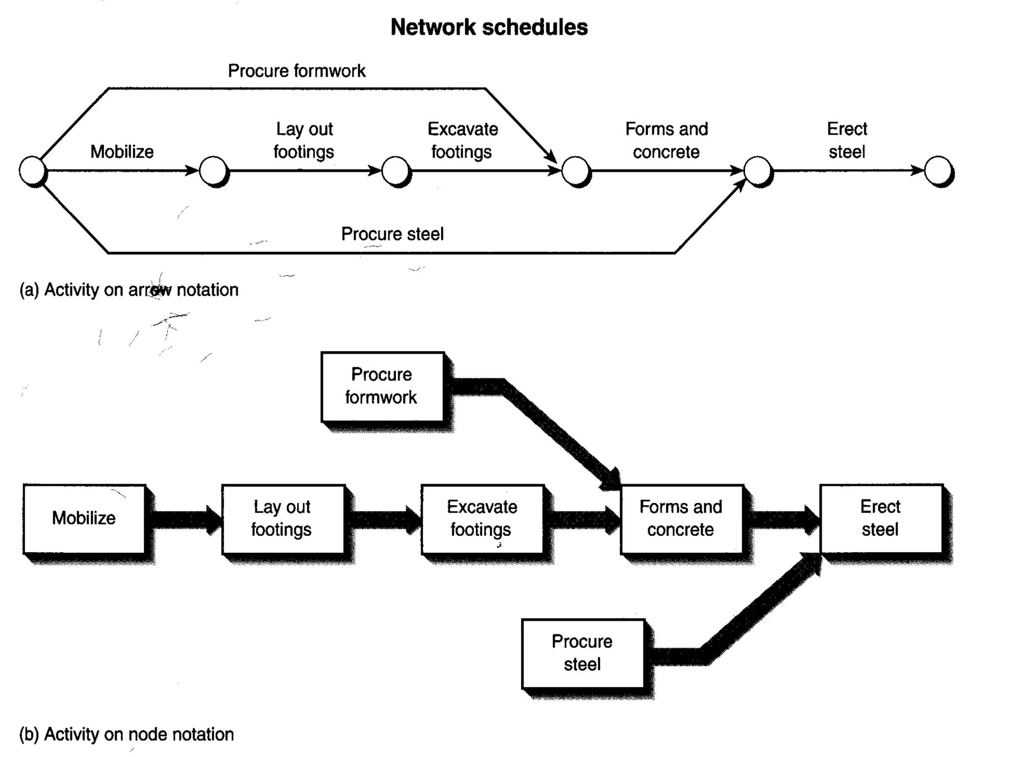This document discusses project scheduling, including definitions, purposes, history, and methods. It covers the stages of scheduling including preconstruction, construction, and postconstruction. Common scheduling methods like bar charts, network schedules, critical path method (CPM), and performance evaluation review technique (PERT) are explained. Key terms related to network scheduling and the critical path method are defined.