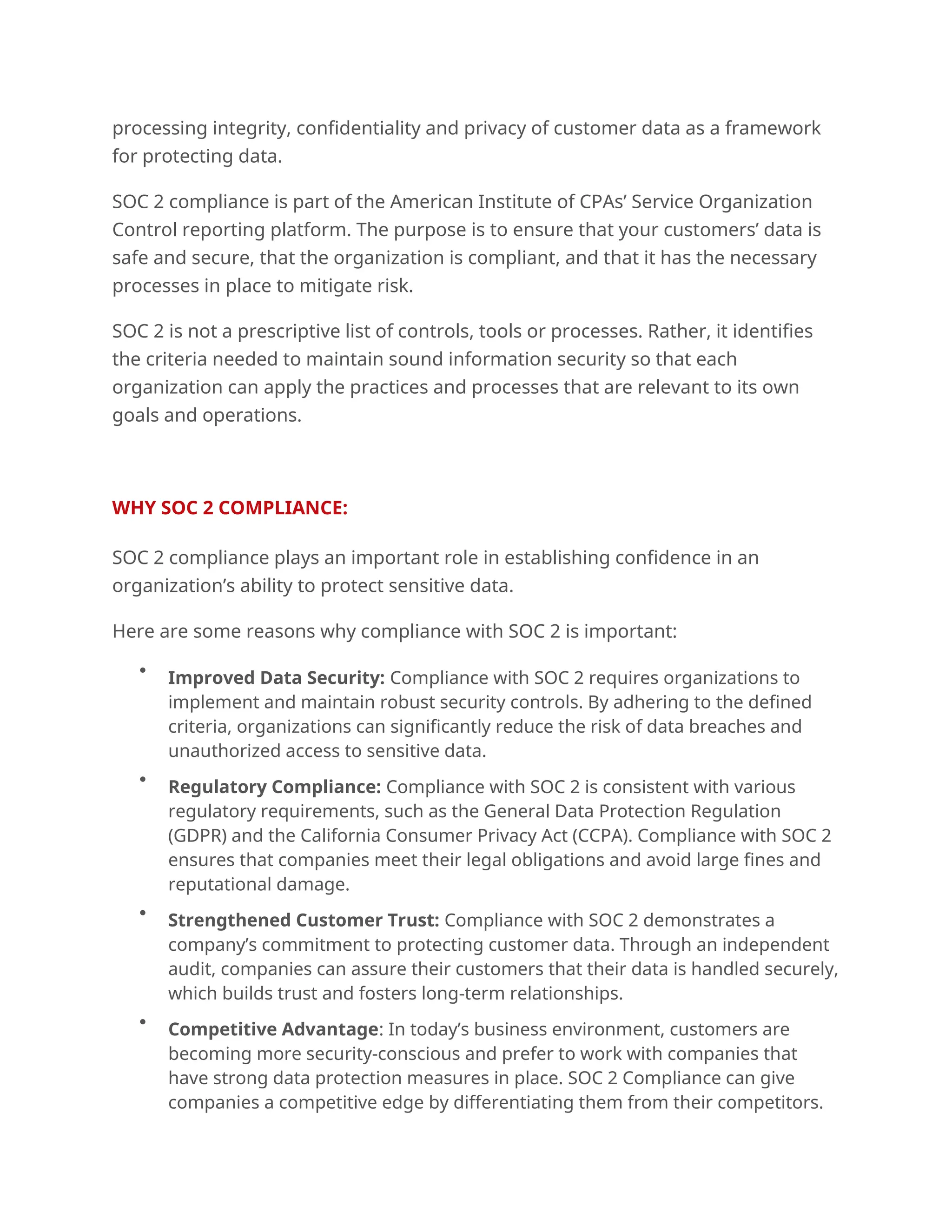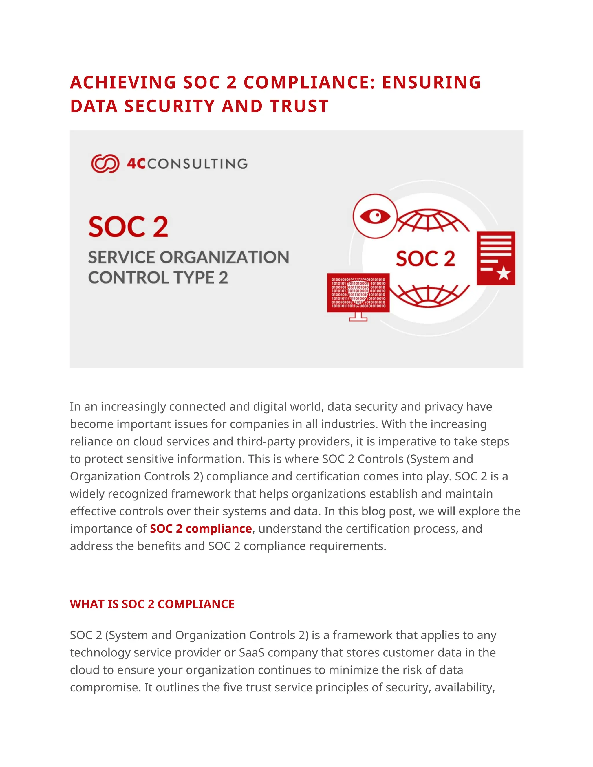The document discusses the importance of achieving SOC 2 compliance to ensure data security and build customer trust in a digital environment. SOC 2 compliance involves adhering to controls that protect customer data and provides a framework for organizations to establish effective security measures. It outlines the certification process, requirements, benefits, and how organizations can leverage compliance for competitive advantage and regulatory adherence.