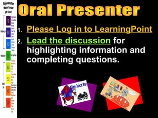 2. Instructions to log into LearningPoint and lead an online discussion by highlighting information and answering questions about ions, the pH scale, acids, bases, and their characteristics and uses.