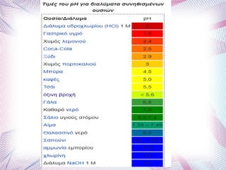 H κλίμακα pH(πε-χα) ως μέτρο της οξύτηταςH κλίμακα pH (πε-χα) ως μέτρο της οξύτητας
