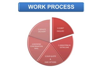 ACK Travel is a leading corporate travel management company in India that provides integrated travel solutions. Their global technology infrastructure allows corporations to analyze travel data and maximize efficiency and return on investment. ACK Travel aims to anticipate customer needs and respond with excellent service. They were founded in 2006 and have experienced consistent growth through their customer-focused and service-oriented approach. Services include domestic and international air, rail, bus, taxi, hotels, visas, holidays, and foreign exchange. Special offers provide additional value to customers. ACK Travel ensures the best rates through direct connections with airlines and well-trained staff.