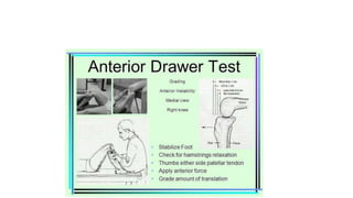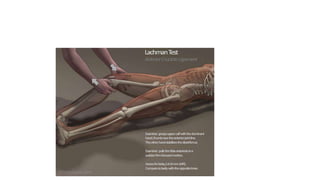 - The ACL has two bundles that stabilize the knee by preventing anterior tibial translation. It is commonly injured in sports involving sudden stops or changes in direction.