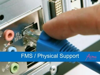 This document provides information about IT management services from ACMA Computers including Infrastructure Management Services (IMS). IMS aims to transform reactive IT management to a proactive and predictive model through monitoring, proactive alerts, automated maintenance, security hardening, asset management, ticketing and reporting. This is intended to save time, manpower and costs while keeping systems healthy, updated and achieving maximum uptime through automated processes.