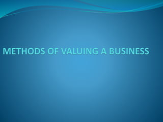 The document discusses acquiring an established business venture through purchasing an existing business. It notes that buying an existing business can represent less risk than starting a new business from scratch. However, one must perform due diligence to understand the terms of the purchase. The document provides advice on evaluating business opportunities and established ventures through examining financial records, operations, competition, and viability factors. It also discusses different business valuation methods like asset-based, earnings-based, and market-based approaches.