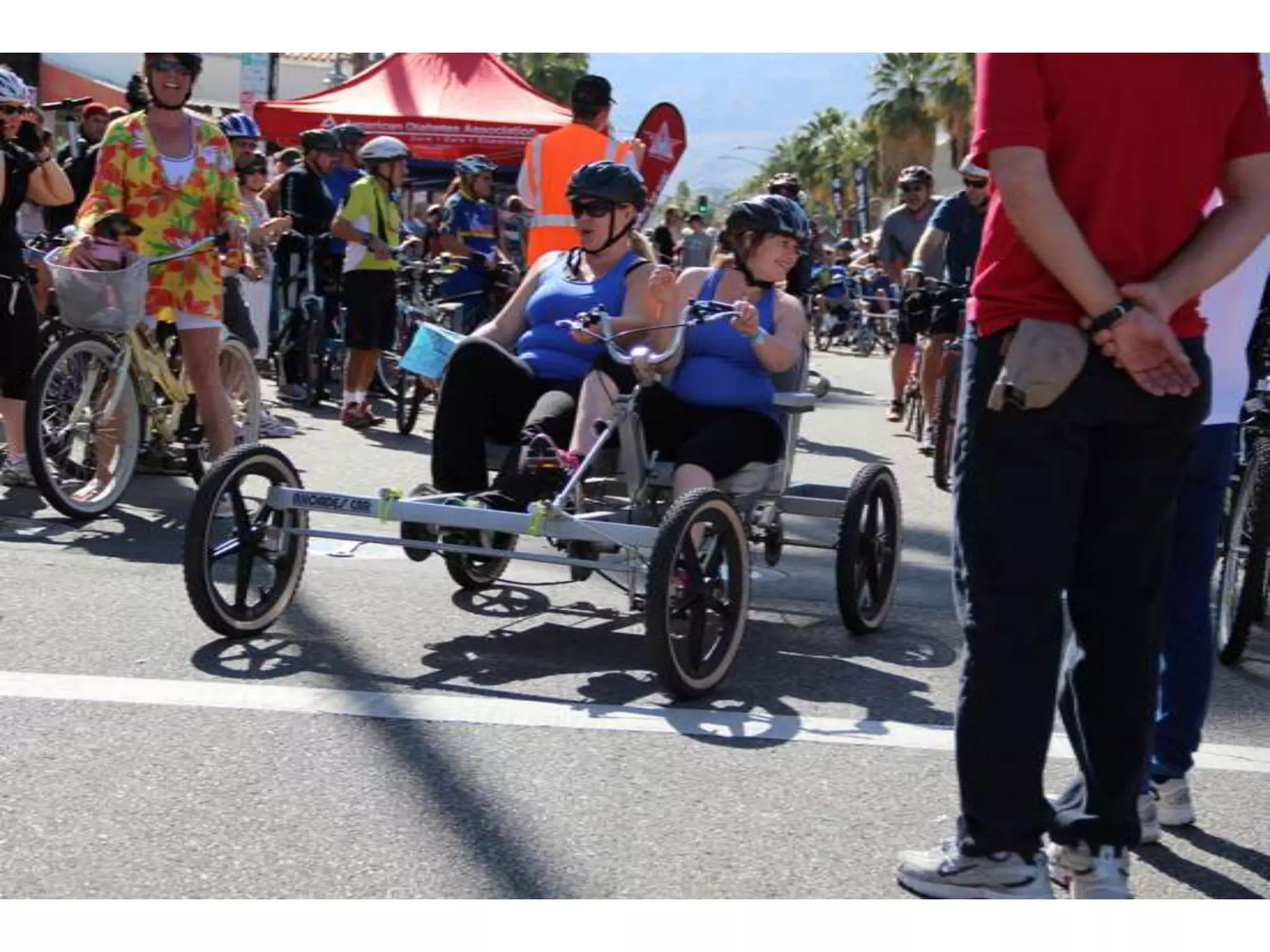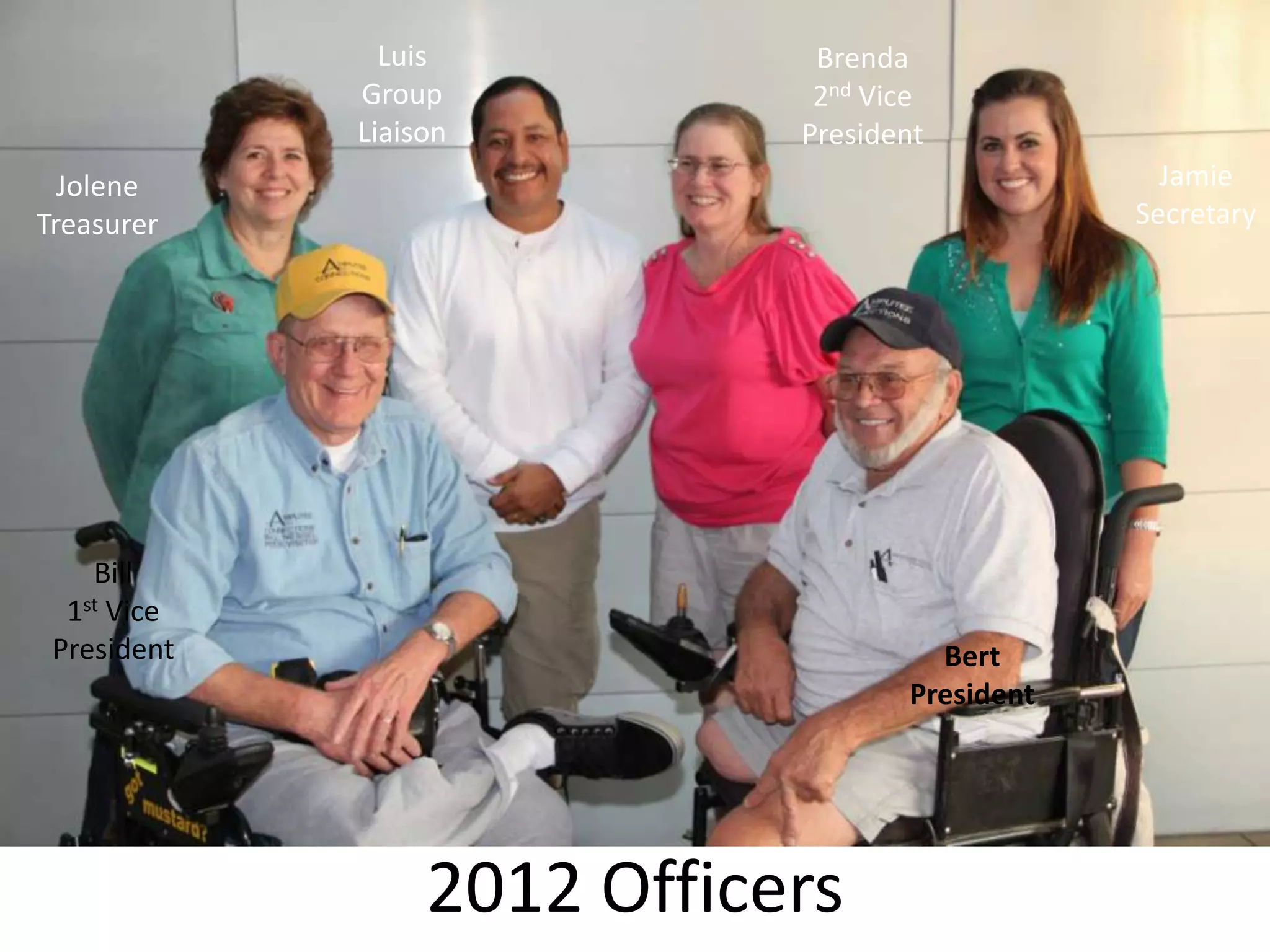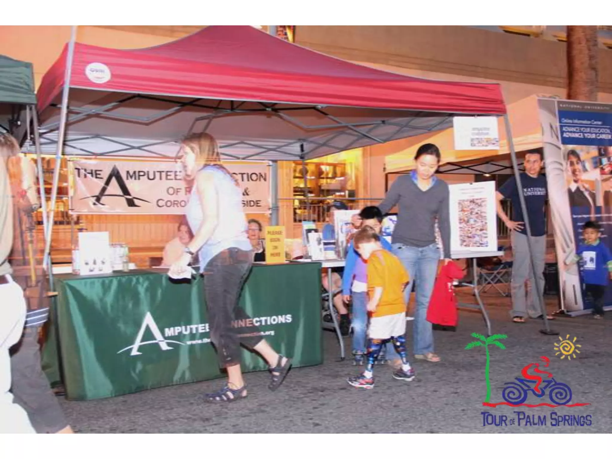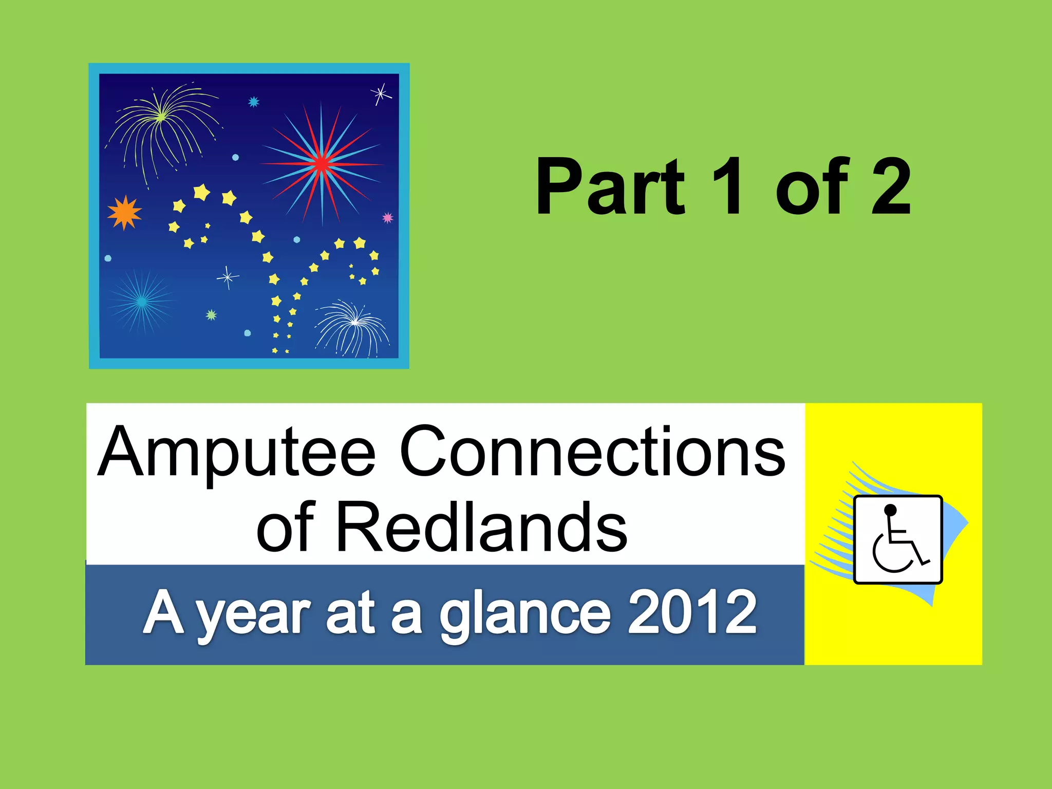 The document provides information about Amputee Connections of Redlands, including its 2012 officers and monthly meeting speakers. It summarizes the organization's involvement in various events like the Tour de Palm Springs cycling event, Ability Expo Los Angeles, a triathlon, and sponsoring children to attend Camp No Limits. Photos from some of these events are also included.