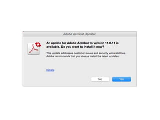The document discusses the history and evolution of PDFs and Adobe Acrobat. It traces PDFs back to John Warnock's "Camelot Project" in 1991 which aimed to create a way to share documents across different computers and operating systems. It describes how PDFs have developed over time, from early versions that allowed limited editing to modern versions that can be edited in different ways depending on the level of control. It also outlines how Adobe has transitioned its software and services to subscription models over the years and integrated them into Adobe Document Cloud.