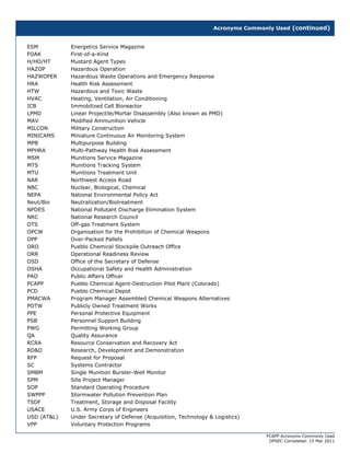 This document lists and defines acronyms commonly used in the chemical weapons program: