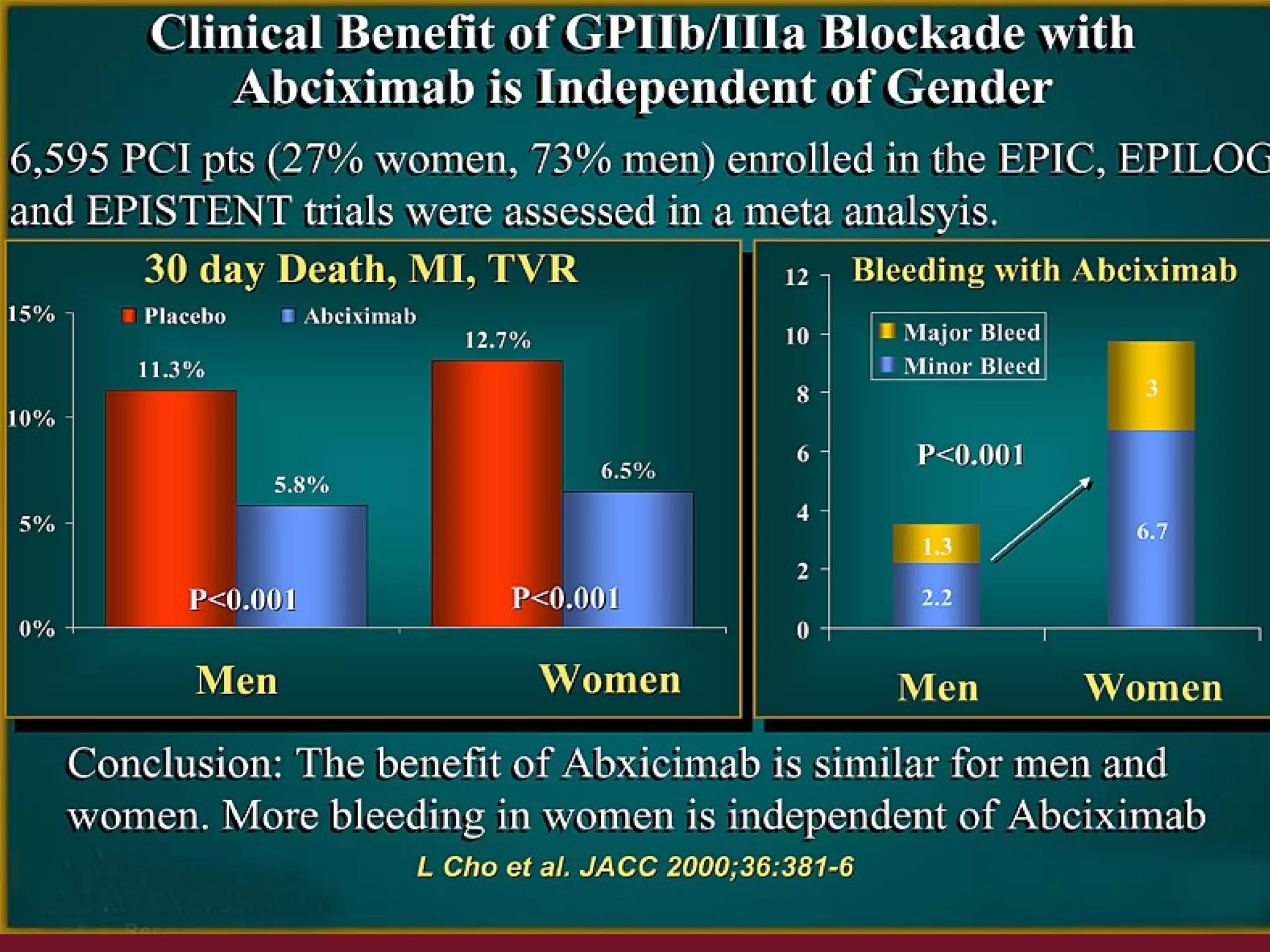 3) While early data showed gender was an independent predictor of mortality after PCI, more recent studies have found no differences in death or re-intervention rates between men and women after adjusting for