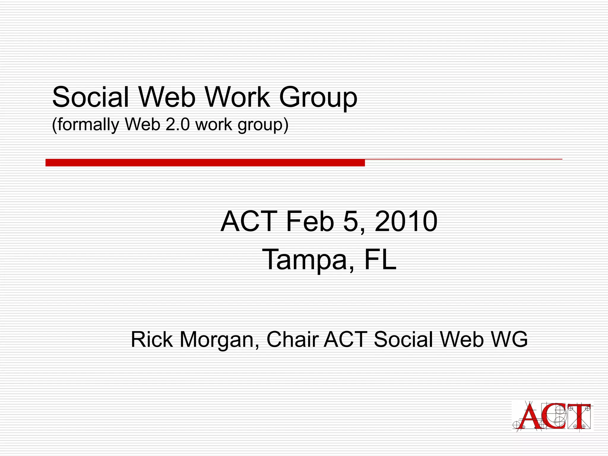 1) The group endorsed changing its name from the Web 2.0 work group to the Social Web work group.