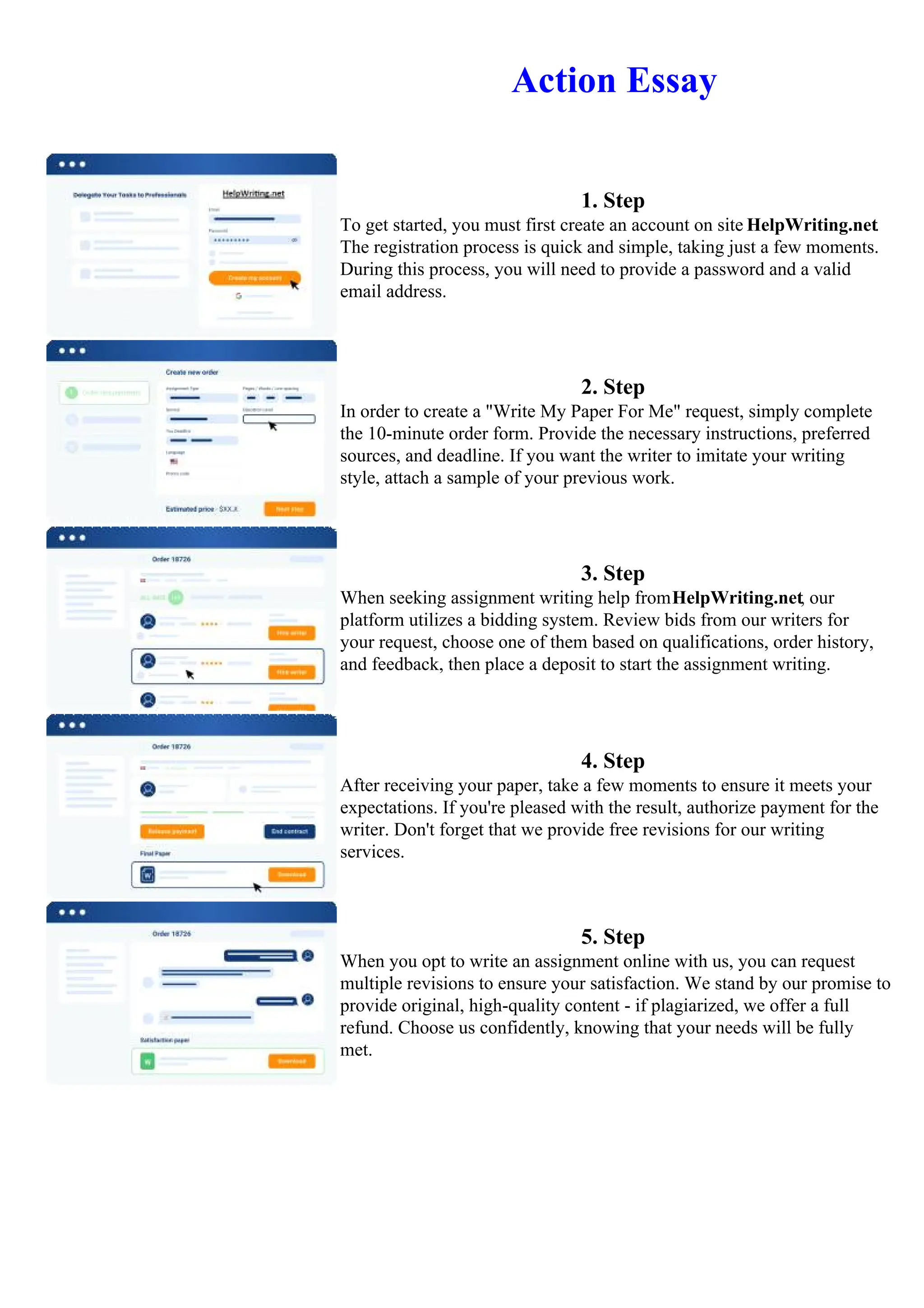 4. Review the completed paper and authorize full payment if satisfied, or request free revisions. HelpWriting.net guarantees original, high-quality work or a full refund.