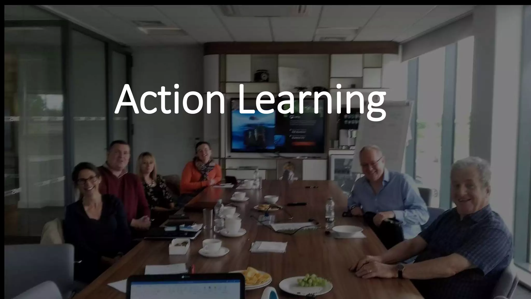 The document outlines the concept of action learning as developed by Professor Reg Revans, emphasizing the importance of small groups or 'sets' to collaboratively discuss and solve real-world problems without the presence of outside experts. It describes the roles of facilitators, mobilizers, and learning catalysts within these sets, highlighting how they foster a supportive environment for sharing insights and encouraging action. The overall goal is to enable members to learn from each other and implement practical solutions through continuous group interaction.