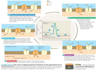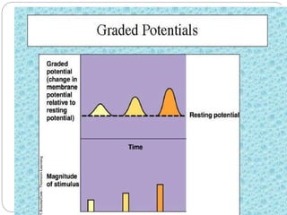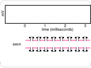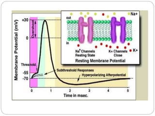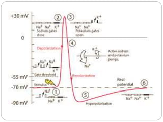 The document explains the process of action potential in neurons, which is an all-or-nothing electrical signal generated by the movement of ions across the axon membrane. It details how resting potential is maintained, the phases of depolarization and repolarization, and the refractory periods that follow action potentials. Finally, it emphasizes the importance of the threshold potential in triggering action potentials and the propagation of these signals along nerve fibers.