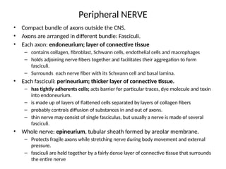 • Each fasciculi: perineurium; thicker layer of connective tissue.