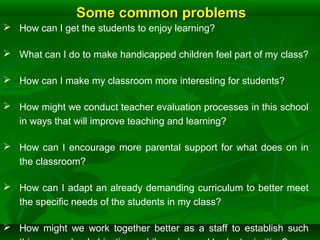Action research involves teachers, students, and parents working together to solve problems in the classroom. It is a reflective process of progressive problem solving to improve situations. Some common problems teachers encounter include how to make learning more enjoyable, accommodate different needs, and encourage parental support. Action research involves both taking action, such as trying new teaching methods, and conducting research, such as analyzing student test scores, to evaluate the effects of changes. Allowing foreign investment and institutions in higher education can help address lack of funding, stop the outflow of students, and increase opportunities through competition and improved quality. However, there are also regulatory issues and concerns about decreased subsidies for marginalized groups that need to be addressed.