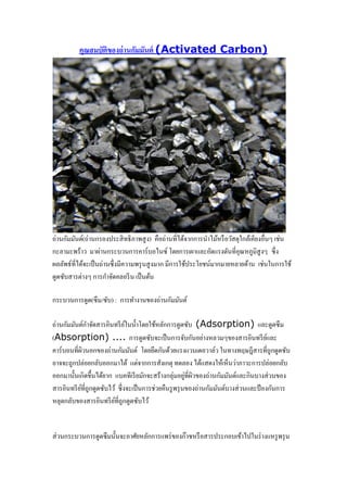 คุณสมบัติของถ่านกัมมันต์ (Activated Carbon) ถ่านกัมมันต์(ถ่านกรองประสิทธิภาพสูง)