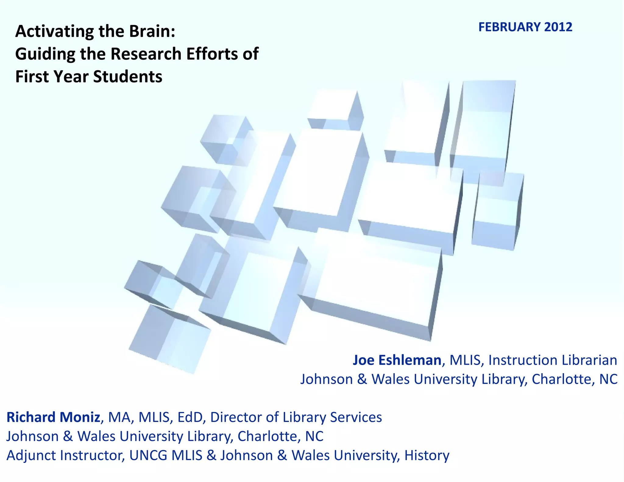 The document summarizes research conducted on the effectiveness of information literacy instruction sessions for first-year college students. 255 students participated in pre- and post-tests to measure their knowledge of research concepts before and after a library instruction session. Results showed significant improvements across all measures, with students better able to use library databases and resources to find information after the session. The authors conclude that embedding information literacy instruction into first-year composition courses benefits students' research abilities.