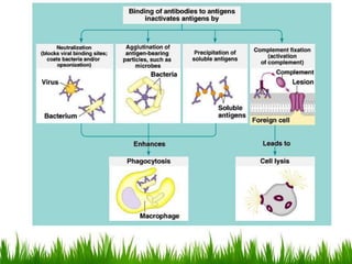 3) The different types of immunity, both natural and artificial, as well as active versus passive immunity. Vaccines are discussed as a way to artificially acquire active immunity.