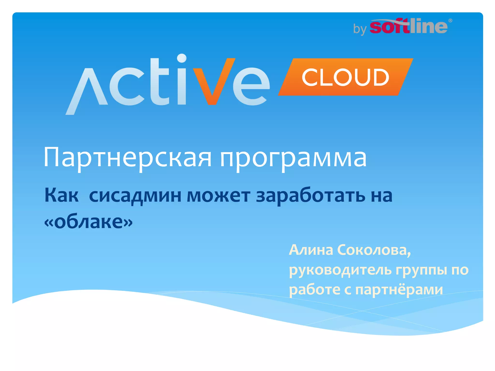 Документ описывает партнёрскую программу компании ActiveCloud, которая предлагает широкий спектр облачных решений и возможность получения дохода от рекомендаций. Партнёры могут зарабатывать до 60% от продаж услуг, имеют доступ к автоматизированным системам и эффективным условиям по выплатам. Основные участники программы — системные администраторы, разработчики и фрилансеры, которые могут использовать индивидуальные промо-коды для привлечения клиентов.
